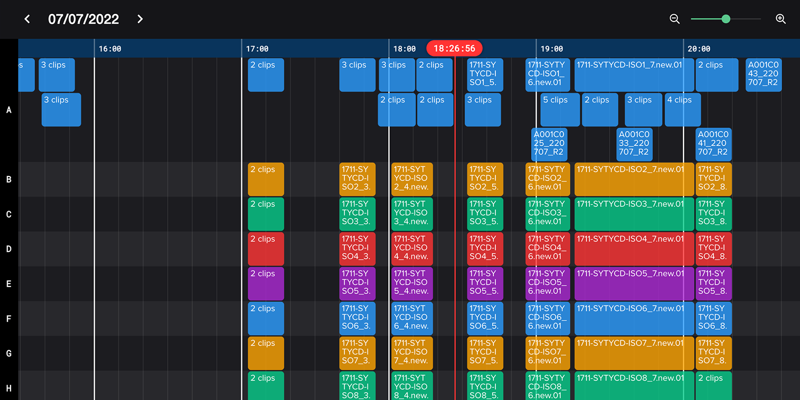 Monitor the progress of your media as it moves from camera ops into the Spire pipeline. With Day View, visualize all your footage on a calendar by shoot-time and date.