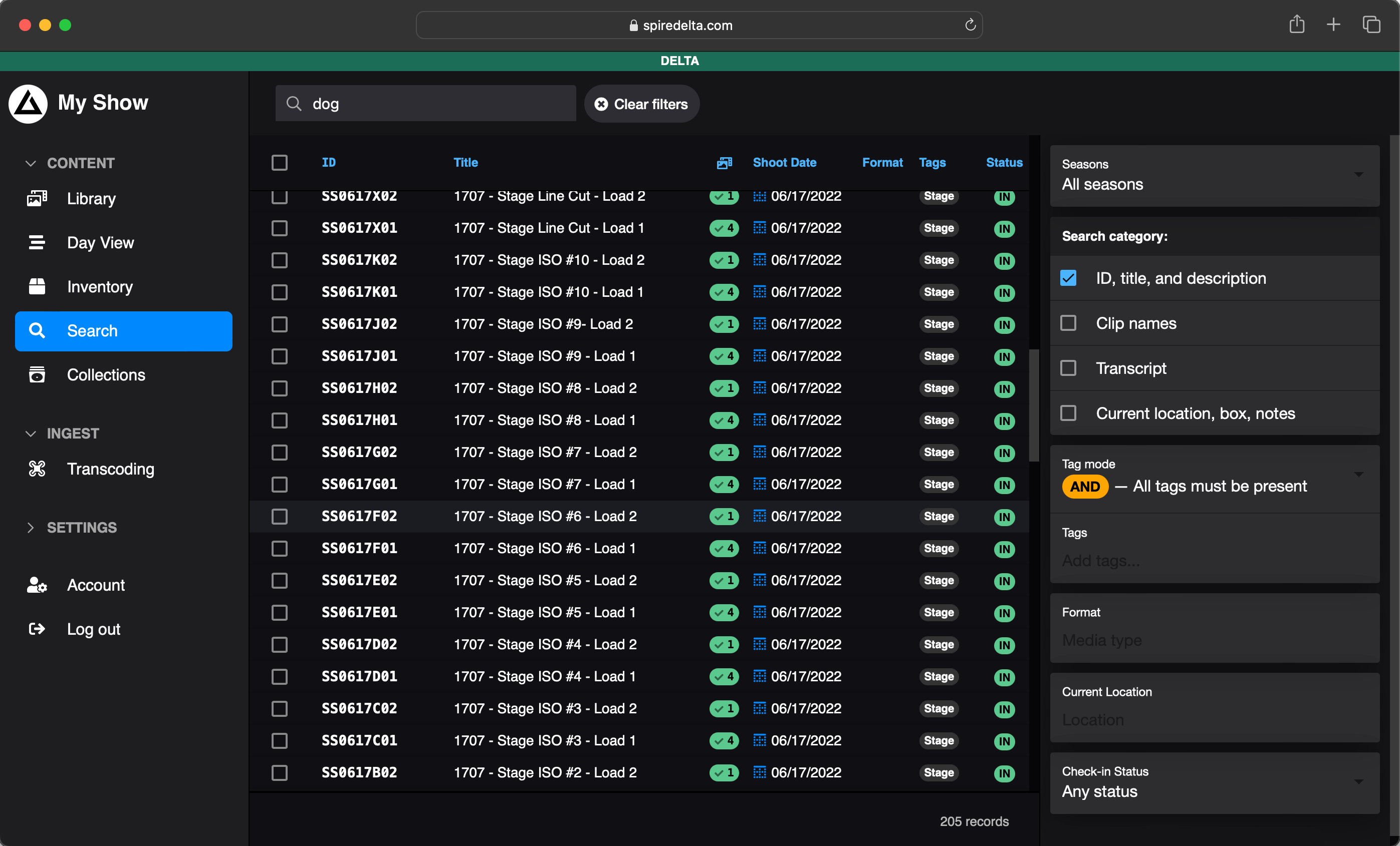 All of your show's media in a single place. Add descriptions and tags. Playback media from your office, or anywhere with a VPN.
